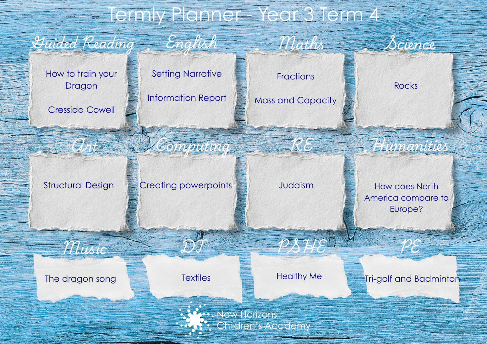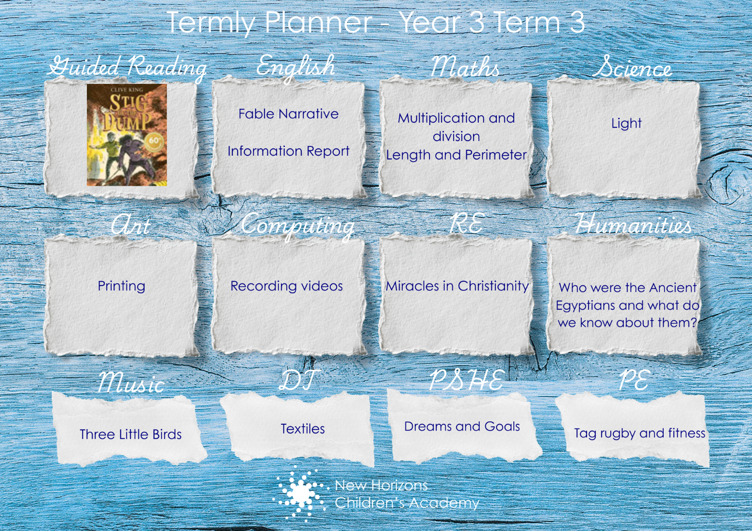Below is an overview of the learning that will take place termly: